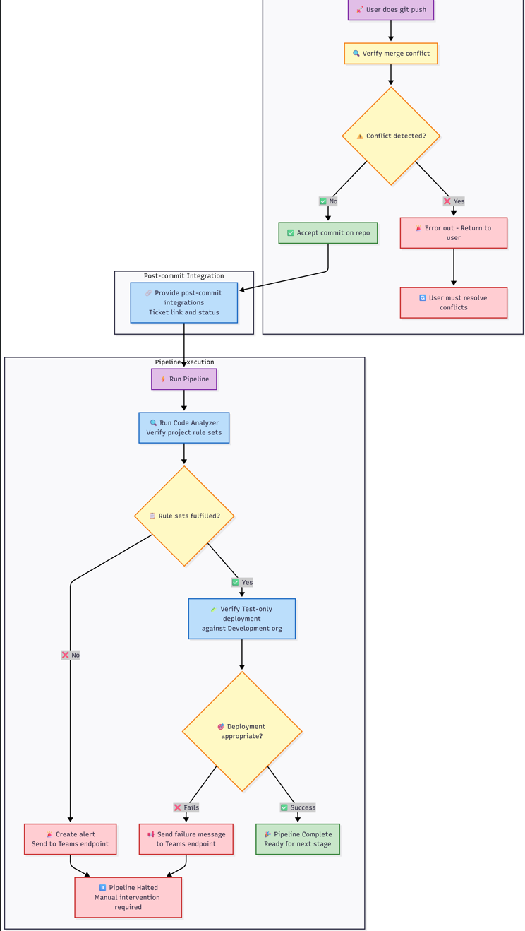 This workflow transforms every local commit into a "mini-deployment" - a validated, deployable unit that can be applied to any Salesforce org later.